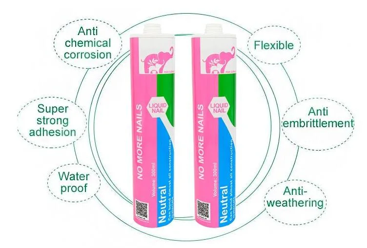 Product Description310ml bond nail glue,no more nails, liquid nail adhesiveModel Number: N01Main Raw Material: SBS1. Brief introduction:1. Super strong initial adhesion, extremely powerful adhesion strength.2. Wide use, can bond most base material, even wet wood board.3. Flexible, anti-weathering, w......