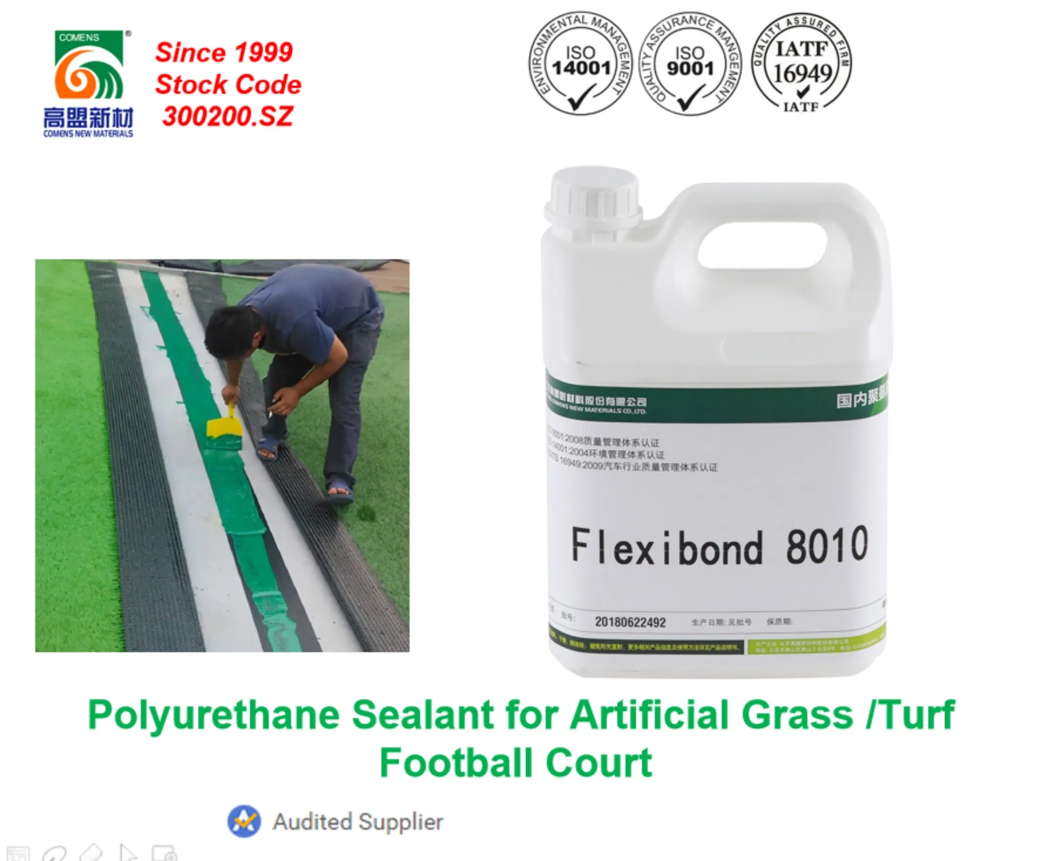 DescriptionFlexibond 8265/8201 is a two-component polyurethane adhesive which is used for bonding jointing strips between synthetic grass sheets.Characteristics(1) No solvent, environmental friendly(2) Uniform paste, easy to use(3) Good adhesion and elasticity(4) Excellent weather resistanceDetailed......