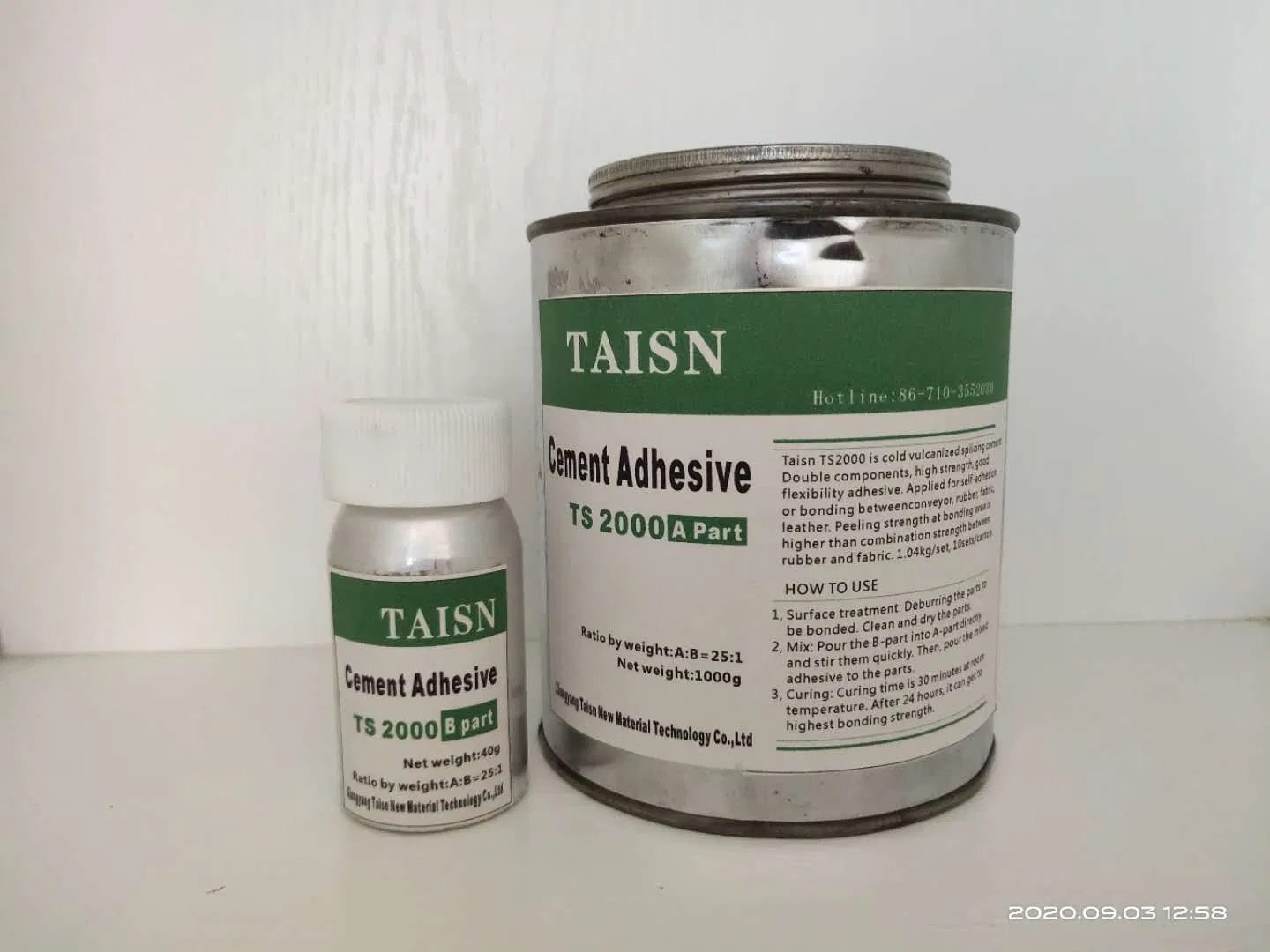 TS2000 Type Conveyor Belt Bonding Adhesive, Can Repalce Tiptop SC2000 Cold Bond CementTS2000 is cold vulcanized splicing cement. Double components, high strength, good flexibility adhesive. Applied for self-adhesion or bonding between conveyor, rubber, fabric, leather. Peeling strength at bonding ar......