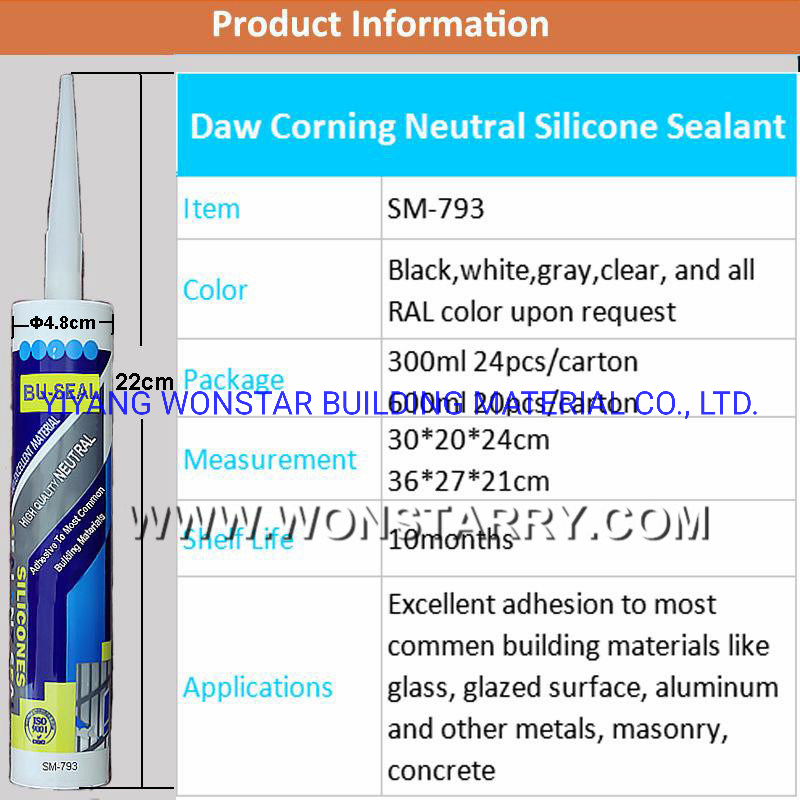 | Applications | Excellent adhesion to most common building materials like glass, glazed surface, aluminum and other metals, masonry, concrete |