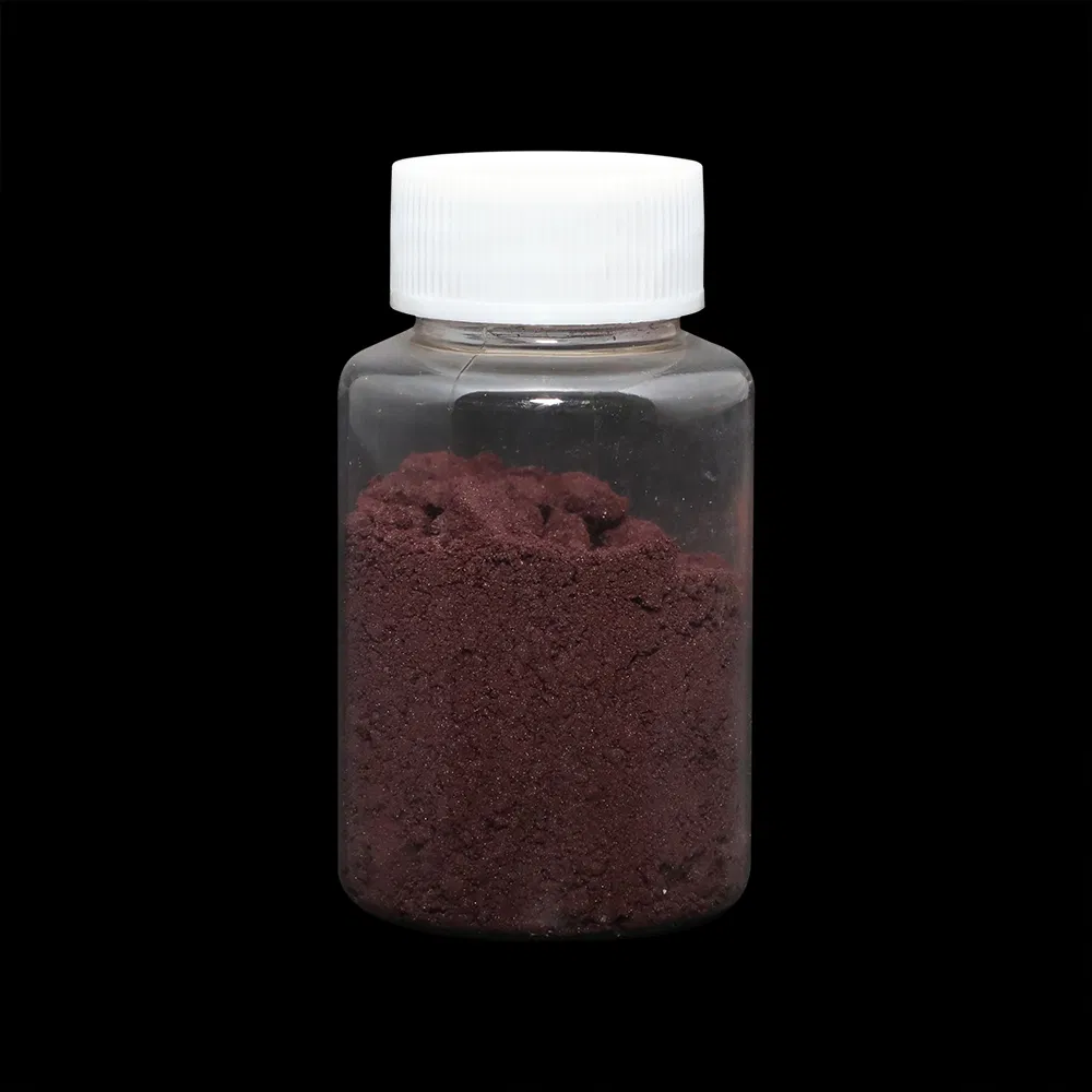 Characteristics: purple red amorphous powder, odorless, metal polish, insoluble in water or carbon dioxide. Relative density 2.20, Relative vapor density (air=1): 4.77,Melting point(ºC)590(4357kPa), ignition temperature(ºC)250-270ºC, vaporizing to gas state when temperature rise up to 630ºC.